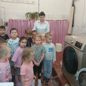 Сегодня наши маленькие «Почемучки» отправились на увлекательную экскурсию прямо на кухню родного детского сада! Здесь дети узнали много интересного: увидели, как повара готовят вкусные блюда, познакомились с секретами приготовления любимых каш и супчиков. Эта экскурсия стала настоящим открытием для наших малышей, ведь теперь они знают, откуда берётся такая вкуснятина каждый день! А спустя несколько дней «Почемучки» с большим интересом заглянули в прачечную детского сада! Они с любопытством наблюдали за процессом стирки и собирали полезные знания о гигиене. Экскурсия помогла детям осознать, как много работы стоит за повседневными делами. Ребята узнали, что забота о чистоте — важная задача, и научились ценить труд тех, кто помогает им в этом.