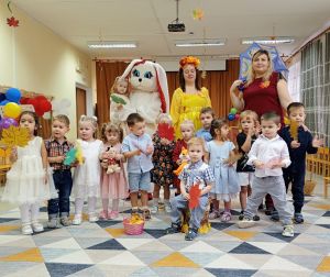Сегодня наши непоседливые малыши получили самый настоящий подарок от осени!Осень пришла не одна – она привела с собой своих верных друзей: смешного ёжика, шуструю лисичку и веселого зайчика Вместе они устроили яркий и незабываемый утренник!Ребята танцевали под задорные песенки и играли в весёлые игры. Осенние друзья приготовили много сюрпризов и подарков каждому малышу